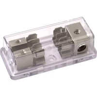 Radio Gagas Platinum AGU fuse block features 2 fuse positions, accepts one 4 AWG input and two 8 AWG outputs, and includes a clear acrylic cover for easy fuse inspection and protection.Features