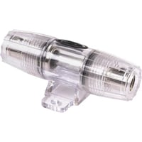 TYPHOON SCO-P8FHI platinum AGU fuseholder features a waterproof base and clear acrylic cover. Accepts 4 or 8 gauge wire on both ends. Rated for 30A current, providing reliable circuit protection.Technical Specs