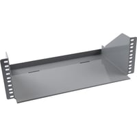 Heavy duty GE Critical Power battery shelf in grey. Measures 19 inches wide and 22 inches deep, designed to securely hold batteries in industrial and critical power applications.Technical Specs