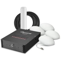 SureCall Force5 2.0 booster kit with omni donor antenna and four ultra-thin dome coverage antennas. Includes one 30' and five 75' SC-400 cables for easy installation and extended coverage.Technical Specs