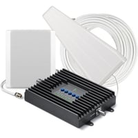 SureCall 5-band signal booster kit covers up to 4,000 sq ft with 72dB gain. Includes 20ft SC-240 coax, 50ft RG6 coax cable, Yagi donor antenna, and panel antenna for enhanced cell reception.Technical Specs
