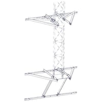 ROHN R-25GWM wall mount kit includes top and bottom brackets and a stub leg base plate for 25G tower sections. Compatible with R-HBUTVRO universal house brackets. Features 11/16" holes for 5/8" HDG threaded rod (not included). Ensure installation supports antenna loads.Features