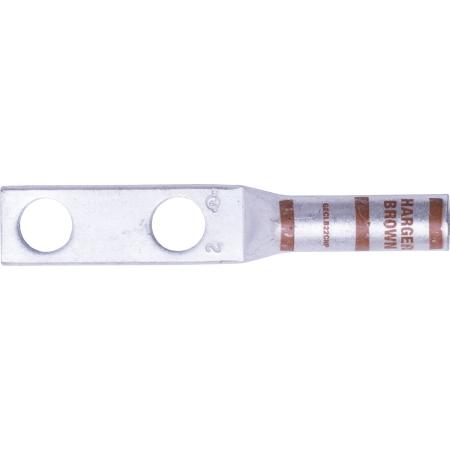 HARGER #2 wire two-hole long barrel lug with 3/8 inch hole diameter and 1 inch center spacing. Designed without inspection hole. Durable and reliable for secure electrical connections. Comes in a pack of 10.Technical Specs