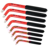 WIHA 8-piece long arm insulated hex key set includes sizes 1/8", 5/32", 3/16", 7/32", 1/4", 5/16", 3/8", and 1/2". Designed for durability and safety with insulated handles for electrical work.Features