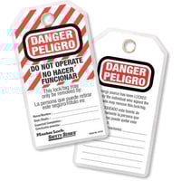 Master Lock Do Not Operate ID tags feature waterproof polyester and a 7/16" brass grommet. Each pack contains 12 bilingual English/Spanish tags measuring 5.75" x 3.125" for clear safety communication.Technical Specs