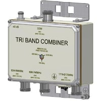KAELUS triplexer supports 700MHz, 850MHz, and PCS-AWS bands. Features a sniffer port with DC/AISG selection via external mechanical switch. Includes mounting hardware for easy installation.Features