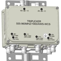 High-quality triplexer supporting 555-960MHz, 1900MHz, and AWS-WCS bands. Ideal for radio communication systems requiring efficient signal separation across multiple frequency ranges.Features