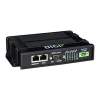 DIGI LTE Cat 4 industrial cellular router features 2 RJ45 10/100 Ethernet ports, 1 DB9 RS232 serial port, 9-30VDC power input, IP30 enclosure, operates from -40°C to +70°C, no WiFi or accessories included.Features