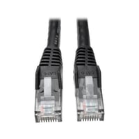 Pack of 50 Tripp Lite Cat6 3ft black patch cables with RJ45 connectors. Supports 1 Gbps Ethernet, 10/100Base-T, and other network standards. Features gold-plated contacts, snagless molded design, #24 AWG stranded UTP, and PVC jacket for durability and reliable high-speed connections.Technical Specs