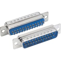 L-COM DB25 female D-Sub connector with solder cup terminals, ideal for custom cable assemblies and secure connections in industrial and communication applications.