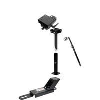 Durable pedestal system for Ford Fusion 2013-2015 featuring no-drill steel base, vertical clearance tubes, 360° locking slide arm, and support brace for stability and reduced vibration during rugged driving.Technical Specs