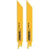 DEWALT 6-inch bi-metal reciprocating saw blade with 18 teeth per inch (TPI) for high-speed metal cutting. Features a straight, durable 3/4" height and 0.035" thickness blade, model DW4811B, ideal for precision metal cutting tasks.Features