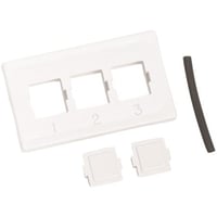 COMMSCOPE M13C-262 furniture faceplate with three ports, designed for clean and organized cable management. Durable white finish ideal for residential or commercial installations.Features