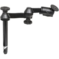 Durable RAM Mounts double swing arm featuring an 8-inch male tele-pole for versatile mounting solutions. Ideal for securing devices with adjustable positioning and strong support.Features