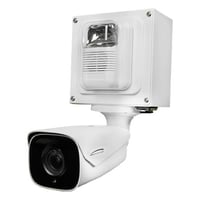 SPECO Indoor Digital Deterrent Box features a built-in strobe light and a 4MP IP bullet camera with advanced AI for enhanced security and alert capabilities.