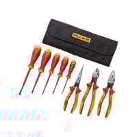 FLUKE IKST7 insulated hand tool starter kit rated for 1000 VAC and 1500 VDC. Includes 3 slotted screwdrivers, 2 Phillips screwdrivers, 3 pliers, and a...