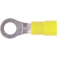 HAINES vinyl insulated ring terminals with butted seam fit #12-10 AWG wires and 1/4" studs. Durable yellow insulation. Pack of 100 terminals ideal for secure electrical connections.Technical Specs