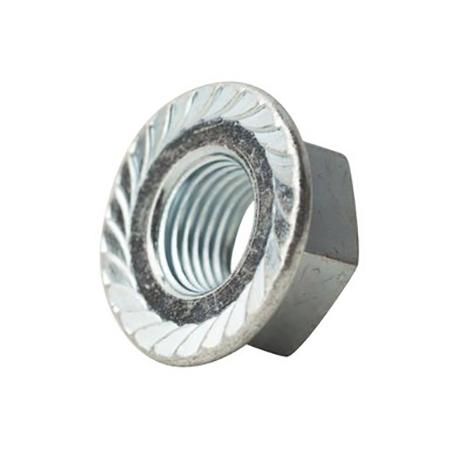 UNEEDA BOLT 1/4"-20 zinc-plated, case-hardened serrated flange nut offers secure fastening with enhanced grip and corrosion resistance for industrial and mechanical applications.