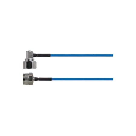 1 meter TFT-402LF cable with 4.3-10 male right angle connector to N male connector, ideal for secure RF connections in communication systems.