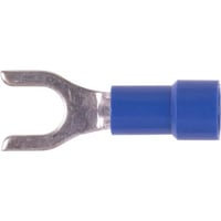 HAINES vinyl-insulated fork terminals for #16-14 AWG wires, compatible with #10 studs. Includes 100 terminals per pack, ideal for secure electrical connections with easy installation.Technical Specs