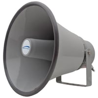 SPECO 10.5-inch weatherproof PA horn speaker with 70/25V line transformer, 60W max power, aluminum construction, and frequency response of 250-15000 Hz. Ideal for outdoor public address systems.Features