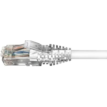Uniprise 10 ft Category 6 U/UTP patch cord with RJ45 connectors on both ends. Features four-pair wiring and a white non-plenum jacket, suitable for high-speed Ethernet connections.Technical Specs
