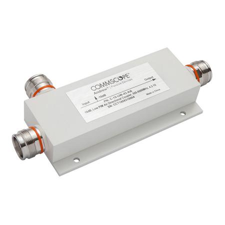 COMMSCOPE 10 dB air directional coupler operates from 555 to 6000 MHz. Features 4.3-10 female connectors and a white finish. Ideal for RF applications requiring signal sampling and monitoring.Technical Specs