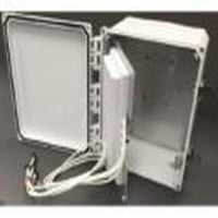 Ventev NEMA 4X polycarbonate enclosure (12x10x6) features an integrated 6dBi directional patch antenna mounted on a swing-out panel. Includes solid door and latch locks for secure, weather-resistant protection.Technical Specs