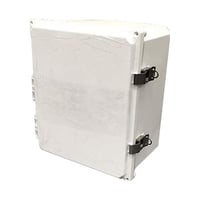 Durable 12x10x6 inch NEMA 4X white polycarbonate enclosure featuring a solid door and secure latch locks. Ideal for protecting electrical components in harsh environments with corrosion and water resistance.Technical Specs