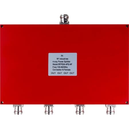 RF Industries RFPSW-3PS-NF is a 4-way Wilkinson power splitter covering 138-960 MHz. Features N Female connectors, IP65 rating, suitable for public safety applications. Provides reliable signal splitting with durable, weather-resistant design.Technical Specs