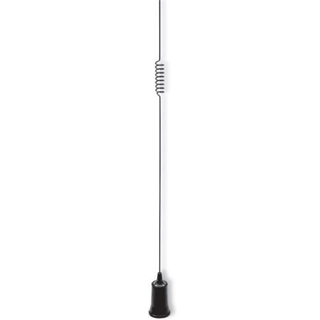 LARSEN NMO2/70B dual-band antenna for 144-148 MHz & 440-450 MHz. Features an open black coil design with 2.4 dB VHF and 4 dB UHF gain using a ground plane. Compatible with NMO mounts (sold separately). Ideal for amateur radio use.Technical Specs