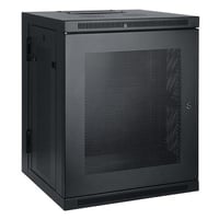 Tripp Lite SRW15US 15U wall-mount rack enclosure holds up to 225 lb of standard 19" rack equipment. Features hinged swing-away design, perforated lockable front door and side panels for airflow, reversible front door, removable sides, and cable routing ports on top and bottom.Technical Specs