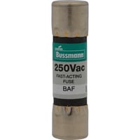 BUSSMANN BAF-1 fast acting midget fuse with 1 amp rating and 250VAC voltage. Made with fiberglass for durability, ideal for circuit protection in electronic devices.