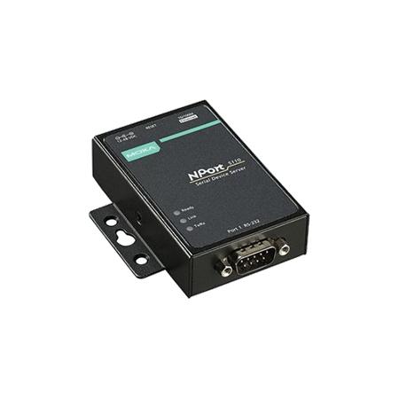 MOXA device server with 1 RS-232 port and 10/100M RJ45 port. Features 15KV serial surge protection, supports 12-48VDC input, and operates in a wide temperature range from -40°C to 70°C.Technical Specs