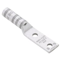 PANDUIT LCCX6-14A-L two-hole flex lug with long barrel design. Fits #6 AWG wire, 1/4 inch stud size, and has 0.63 inch hole spacing. Ideal for secure electrical connections.Technical Specs