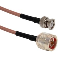 High-quality 2-foot DAS jumper cable made with RG-142 plenum-rated coaxial cable featuring BNC male to N male connectors for reliable signal transmission in indoor applications.Technical Specs