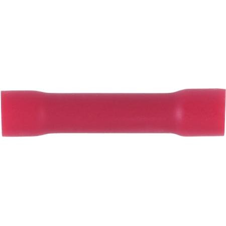 HAINES red vinyl insulated butt connectors for 22-18 AWG wires. Pack of 100 connectors ensures secure wire splicing with insulation protection.