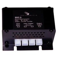 Samlex SDC-5 step-down converter with switch mode technology. Converts 20-32 VDC input to 13.6 VDC output at 5A continuous current, ideal for stable 12V power supply needs.Technical Specs
