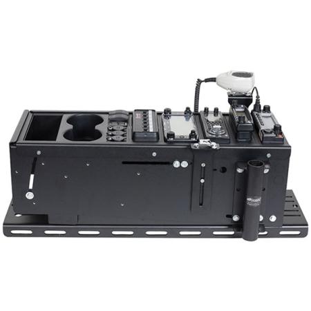 Gamber-Johnson 25-inch universal console box features adjustable height (8.36-11.36 in) and up to 9° tilt. Includes 3 faceplates and 3 filler panels. Designed for radios and electronics. Sturdy, spacious, and customizable to fit various vehicles.Technical Specs