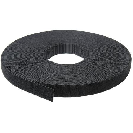 VELCRO® ONE-WRAP® strip in black, 1 inch wide and 25 yards long. Features a unique back-to-back fastening system with polyethylene hooks laminated to nylon loops, providing a strong, reusable, and adhesive-free solution for bundling and organizing cables.Technical Specs