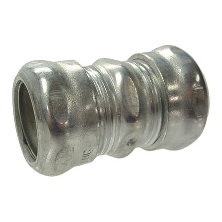 Hubbell Raco 2928RT 2-inch EMT raintight compression coupling made of zinc-electroplated steel for enhanced corrosion resistance and mechanical protection. Ideal for secure, weather-resistant conduit connections.Features