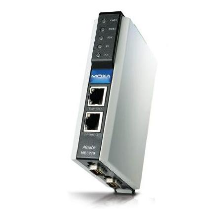 The Moxa MGate MB3270-T features 2 RJ45 Ethernet and 2 DB9 serial ports (RS-232/422/485). Supports Modbus TCP, ASCII, RTU with slave/master modes. Wide -40 to 75°C, 12-48 VDC input, DIN-rail mountable, dual Ethernet for daisy chaining, ideal for industrial automation.Technical Specs