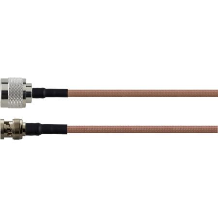 3-foot RG-142U coaxial cable jumper featuring N Male to BNC Male connectors, ideal for reliable RF signal transmission with low loss and high durability.