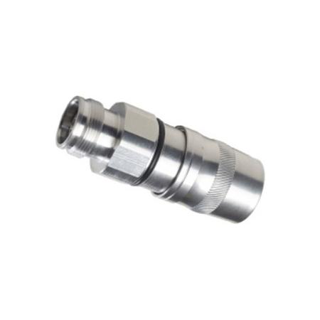 RFS 4.3-10 Female Straight Connector designed for 1/2" foam dielectric coaxial cables. Features OMNI FIT Premium design with polymer claw and compression sealing. Provides IP68 waterproof protection for reliable outdoor use.Technical Specs