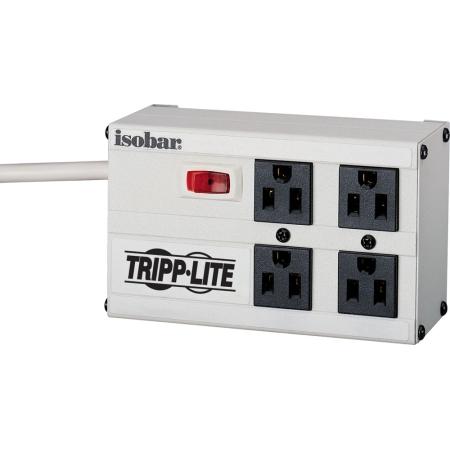 Tripp Lite ISOBAR4 AC line filter offers 4 duplex outlets, spike protection, and high-frequency noise suppression. Designed for 125 VAC input to safeguard connected devices and reduce electrical interference efficiently.Technical Specs