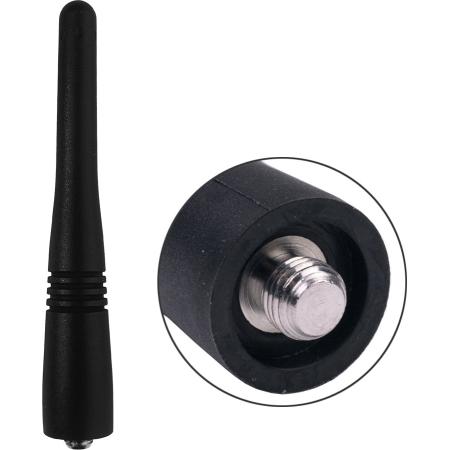 LAIRD EXR400BN portable antenna covers 400-420 MHz with 6.95-inch length. Features a right-angle design with swivel elbow and BNC connector. Quarter-wave antenna suitable for reliable communication in this frequency range.Technical Specs