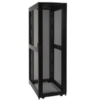 48U standard depth rack enclosure designed for high-density server and networking equipment. Features perforated doors for optimal airflow, heavy-duty casters for mobility, adjustable rails with depth indexing, and tool-less mounting slots. Supports up to 3000 lbs and integrates cooling, power, and cable management.Features