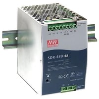 MEAN WELL SDR-480-48 industrial DIN rail power supply delivers 48V DC at 10A with PFC. Supports 90-264VAC or 124-370VDC input, ideal for reliable, efficient power in industrial applications.Technical Specs