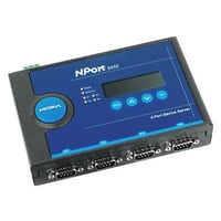Moxa NPort 5450I-T connects 4 RS-232/422/485 serial devices to 1 RJ45 10/100BaseT Ethernet port. Supports TCP Server/Client, UDP, and Real COM modes. Features 2KV isolation, -40 to 75°C operation, 12-48 VDC input, and multiple configuration options.Technical Specs