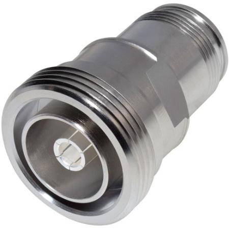 RF Industries RFD-1685-4 PIM adapter with 7/16 DIN Female to 4.3/10 DIN Female connectors. Features a low PIM of -160 dBc, ideal for RF applications requiring high performance and minimal interference.Technical Specs